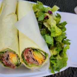 First time here, I ordered a egg, cheese, bacon wrap and it comes with salsa and sour cream on the side. It was pretty good. They have all kinds of food selections from breakfast to teriyaki bowls and chicken noodle soup. The staff was very friendly and welcoming which was the main reason for this review.